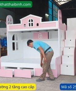 Giường 2 tầng trẻ em màu hồng MS 2593